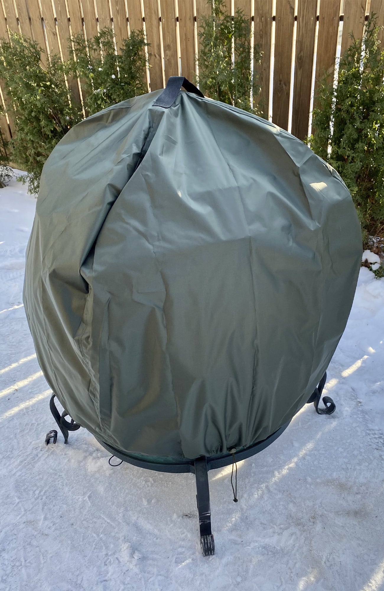 A protective cover for the tandoor is represented by a dense fabric that protects the tandoor from dirt and moisture. As a material for the cover, we chose a fabric that does not allow water and dust to pass through. The cover has a pleasant olive shade. The accessory will come in handy during the period when the tandoor is not used. It protects the appearance of the stove from contamination. The cover is universally suitable for tandoors and barbecues. At the bottom of the cover there is a fixing tape that protects from the wind.