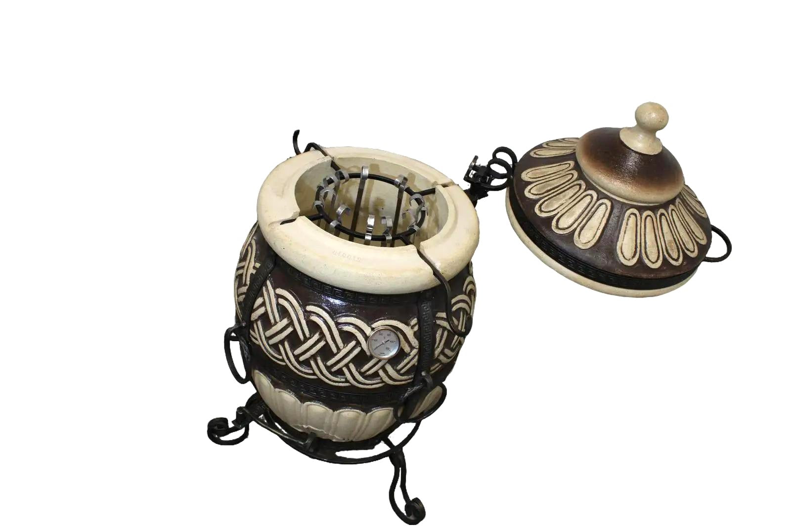 The outdoor clay tandoor oven Kiev GT is a very good-looking clay oven for home. Key Features: Powerful torso, combat weight. More suitable as a stationary cooking area. Skewers are enough for a large company. Moreover, they can be used simultaneously. Wall thickness 7 cm - able to retain heat and heat for many types of dishes for a long time.Suitable for use with a 4-in-1 set and a stainless steel three-tier 27CM rack.