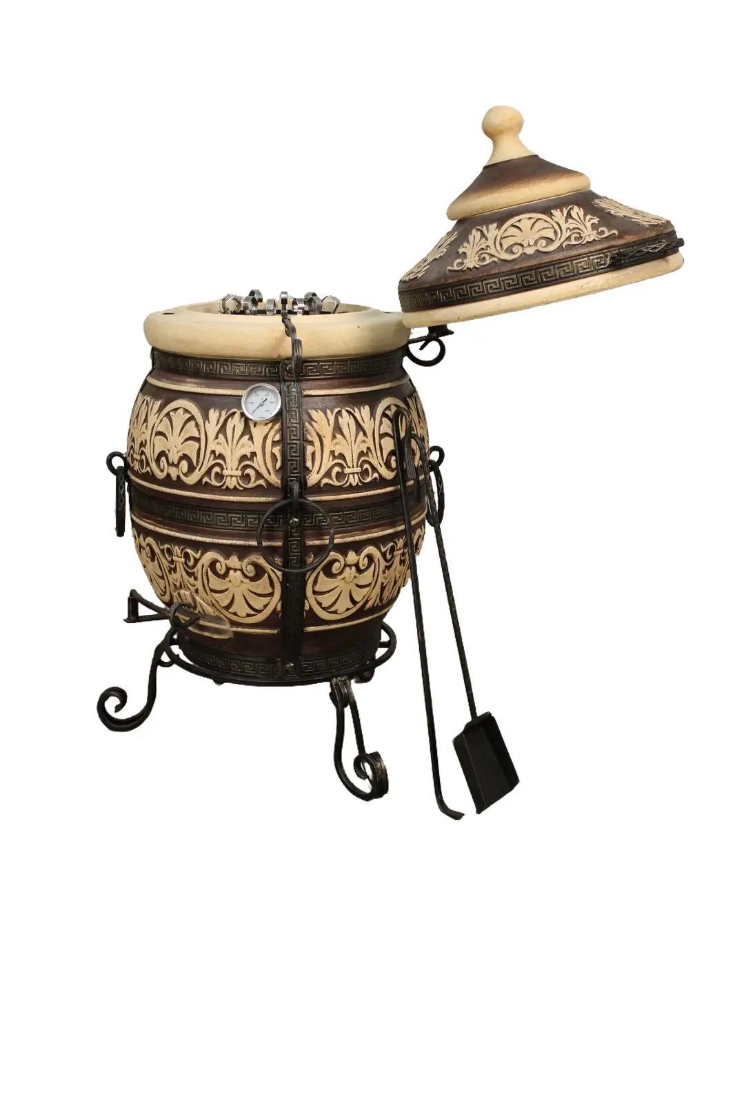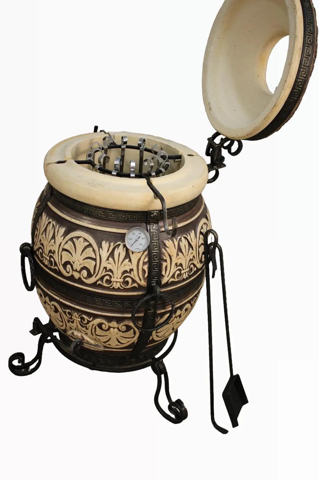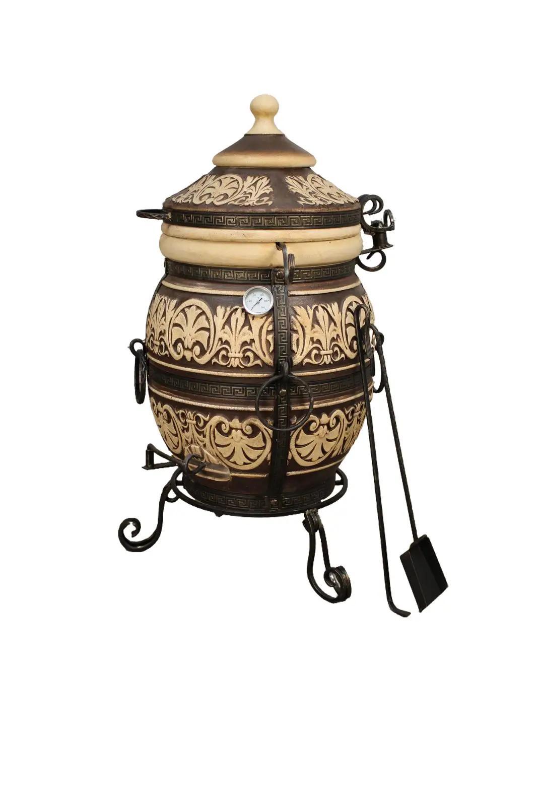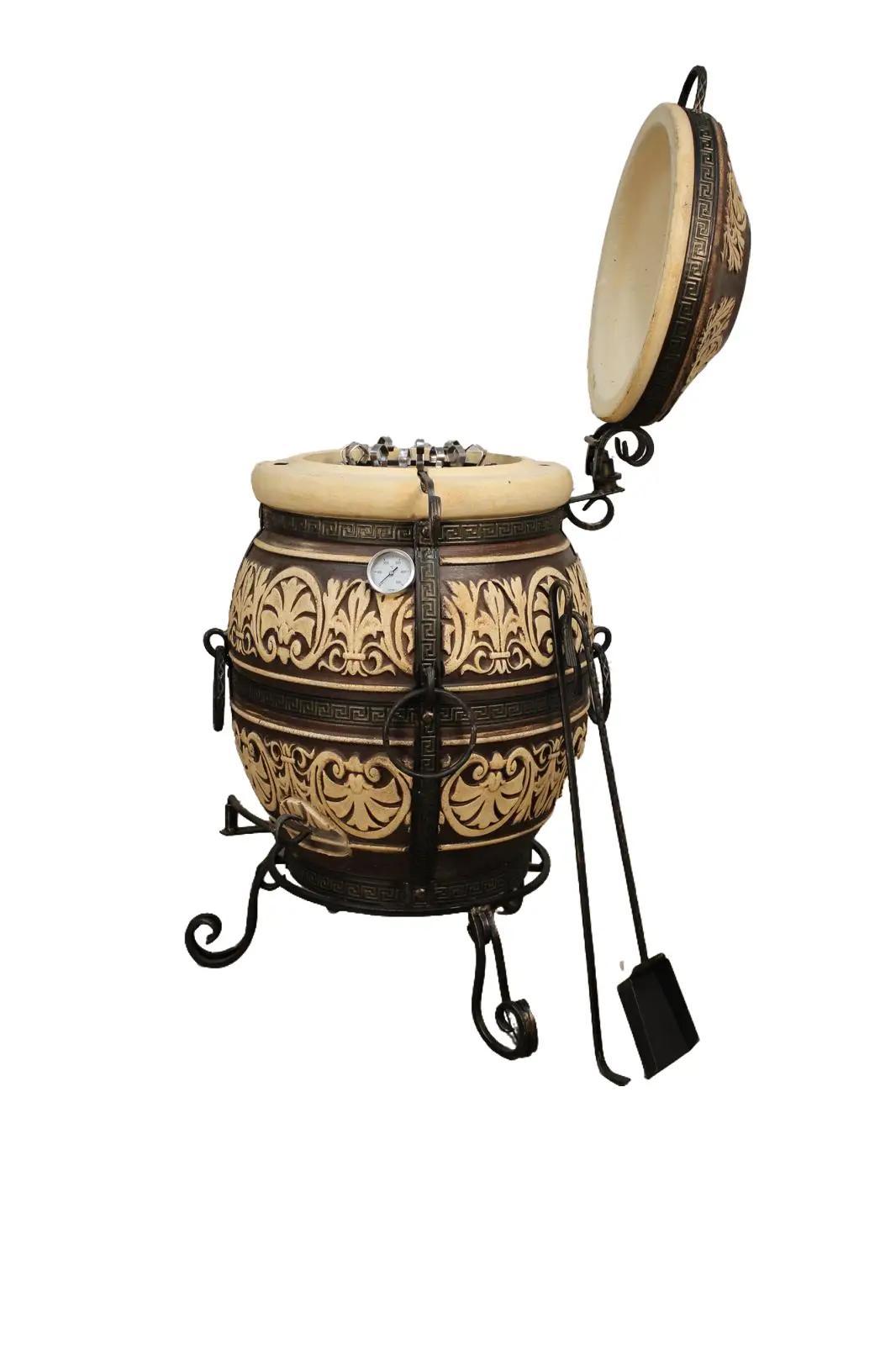 Ready for cooking meat, fish, tandoori chicken, mushrooms, vegetables, bakery products. Bake samsa, flatbread or naan bread. Use it as a smoker! This tandoor oven is a classic version of a outdoor clay oven that can create a lot of delicious things.